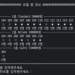 import java.util.Scanner; public class RoomInfo { static final int ALLROOMNUMBER = 34; static final int ROWNUM02 = 2; static final int ROWNUM03 = 3; static final int COLNUM = 3; static final int STANDARDLIMIT = 20; // 일반 룸 번호 101~121호까지 static final int DELUXLIMIT = 30; // 디럭스 룸 번호는 201~211호까지 // 스위트룸은 301~304호 static String[][] ihotelRoom = new String[ROWNUM03][ALLROOMNUMBER]; static String[][]..